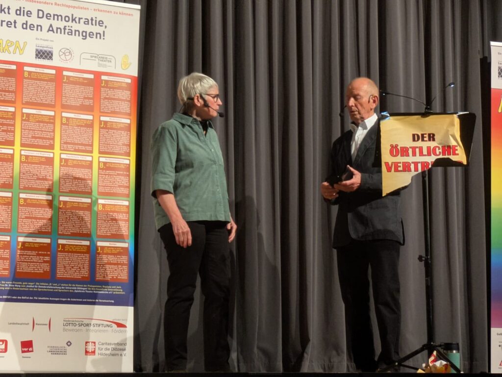 Die Theatergruppe des Spielkreis Theater Matthiaskirche brachte Riccos Text in nur einer Stunde mit viel Spannung und Gefühl auf die Bühne. Zwei frühere Freunde treffen sich auf einer Wahlveranstaltung wieder – und plötzlich prallen Welten aufeinander, bis eine emotionale Wendung alles verändert.