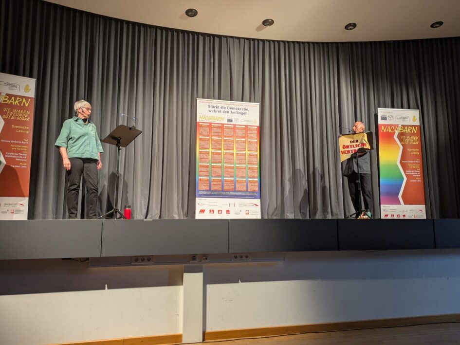 Die Theatergruppe des Spielkreis Theater Matthiaskirche brachte Riccos Text in nur einer Stunde mit viel Spannung und Gefühl auf die Bühne. Zwei frühere Freunde treffen sich auf einer Wahlveranstaltung wieder – und plötzlich prallen Welten aufeinander, bis eine emotionale Wendung alles verändert.