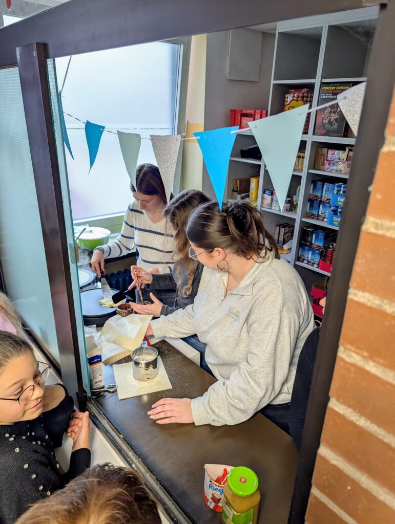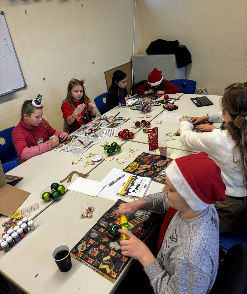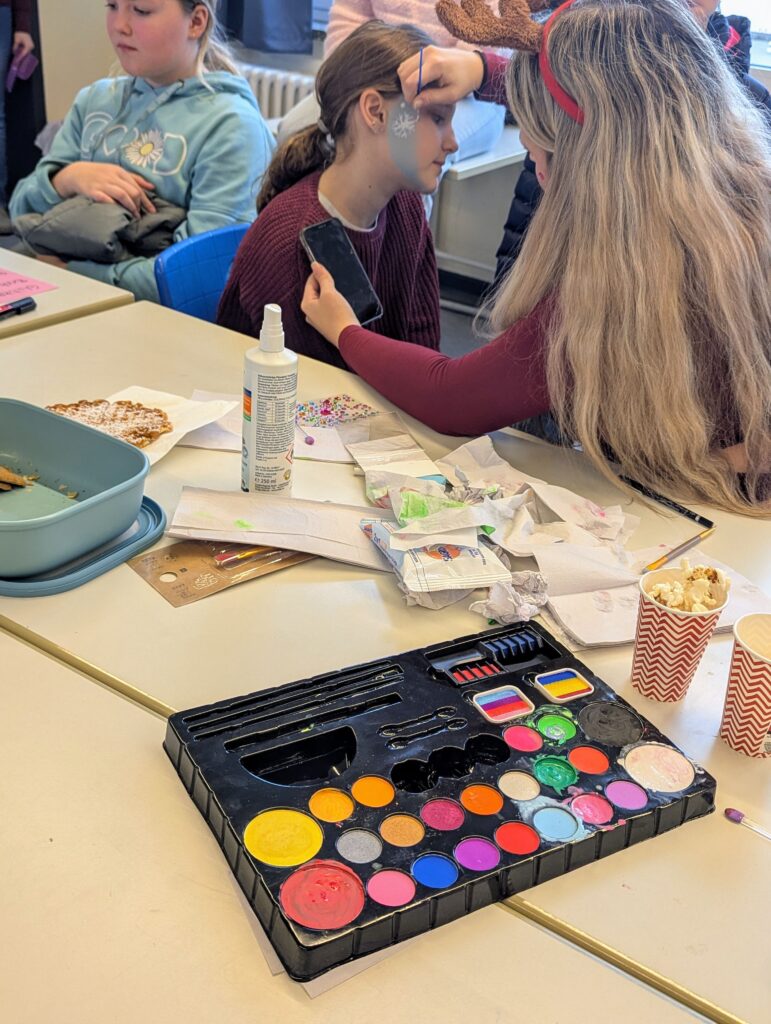 Ob Weihnachtssterne basteln, Kekse und Deko bemalen, Weihnachtskarten gestalten oder sich mit (meist) weihnachtlichen Motiven schminken lassen – überall war etwas los. Für den kleinen (oder großen) Hunger gab es Popcorn, Hotdogs, Crêpes, Waffeln sowie eine Cocktail-, Punsch- und Kakaostation. Wer sich zwischendurch bewegen wollte, konnte bei Just Dance (siehe Video unten) zeigen, was er draufhat oder beim Twister die vorweihnachtliche Koordination und Flexibilität unter Beweis stellen.