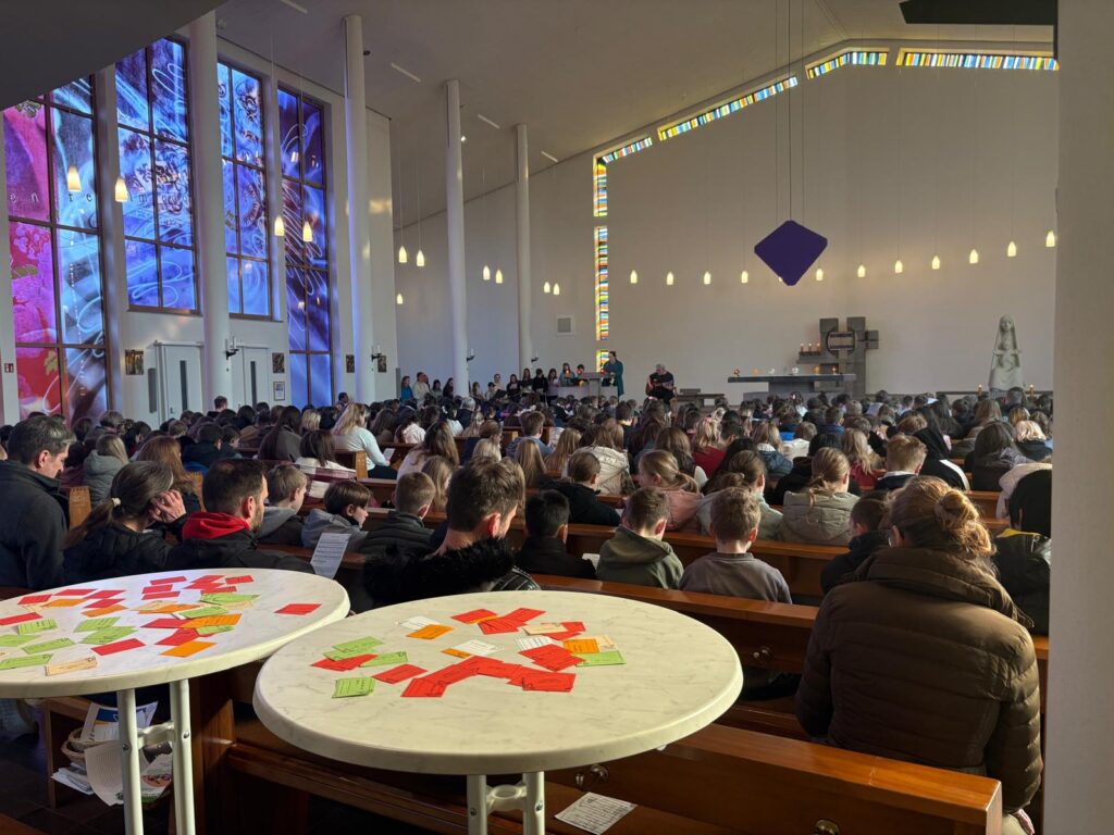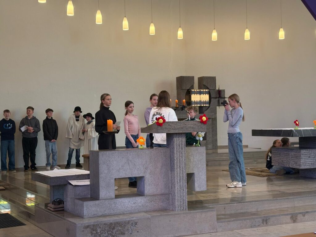 Am Freitag, den 20. März, begrüßte Pastor Thomas die Schülerinnen und Schüler der Jahrgänge 5 bis 7 in der St.-Bernward-Kirche zum ökumenischen Gottesdienst. Im Mittelpunkt stand die biblische Geschichte vom Einzug Jesu in Jerusalem.